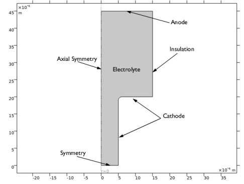 In the Select Physics tree, select Electrochemistry>Electrodeposition, Deformed Geometry>Electrodeposition, Tertiary with Supporting Electrolyte.