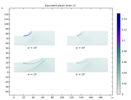 In the tree, select Component 1 (Comp1)>Solid Mechanics (Solid)>Linear Elastic Material 1>Soil Plasticity 1 and Component 1 (Comp1)>Solid Mechanics (Solid)>Linear Elastic Material 1>Initial Stress and Strain 1.