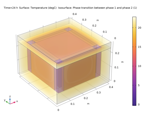 In the Model Builder window, under Component 1 (comp1)>Heat Transfer in Solids (ht)>Fluid 1 click Phase Change Material 1.