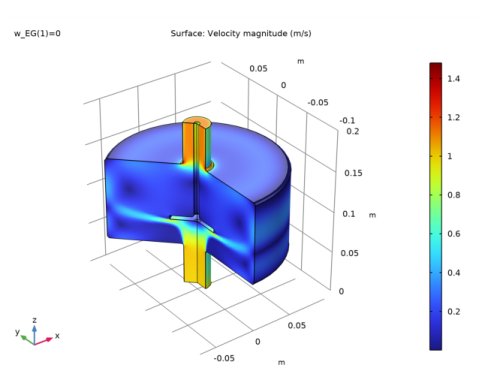 In the Model Builder window, under Results, Ctrl-click to select Velocity (spf), Pressure (spf), Temperature, 3D (ht), and Isothermal Contours (ht).