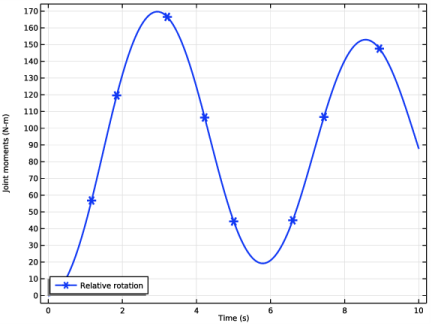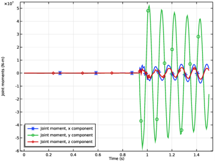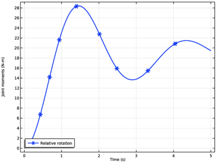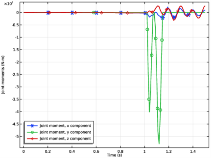 Click Add Expression in the upper-right corner of the y-Axis Data section. From the menu, choose Component 1 (comp1)>Multibody Dynamics>Hinge joints>Hinge Joint 2>Joint moment - N·m>mbd.hgj2.My - Joint moment, y component.