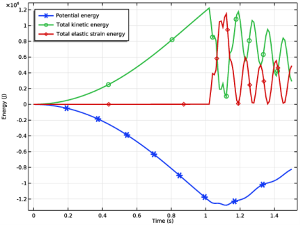 Click Add Expression in the upper-right corner of the y-Axis Data section. From the menu, choose Component 1 (comp1)>Multibody Dynamics>Global>mbd.Ws_tot - Total elastic strain energy - J.