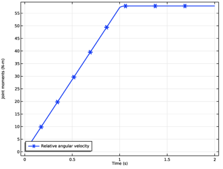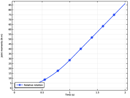 In the Model Builder window, under Component 1 (comp1)>Multibody Dynamics (mbd) click Hinge Joint 2.