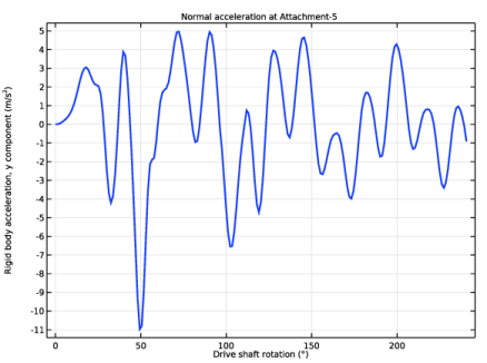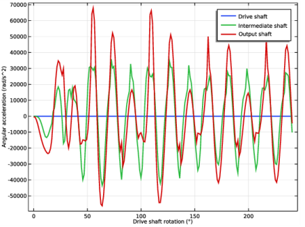 In the Model Builder window, expand the Angular velocity 1 node, then click Results>Angular acceleration>Global 1.