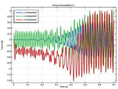 In the Model Builder window, expand the Forces (Foundation-1) 1 node, then click Results>Forces (Foundation-1): Frequency>Global 1.