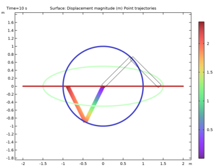 In the Model Builder window, under Component 1 (comp1)>Multibody Dynamics (mbd)>Rigid Domain 2>Initial Values 1 click Center of Rotation: Boundary 1.