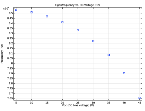 In the Rename 1D Plot Group dialog box, type Eigenfrequency vs. DC voltage in the New label text field.