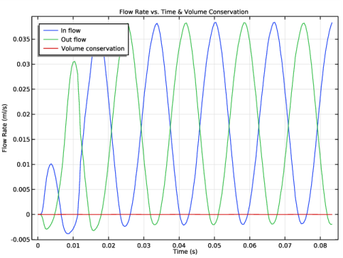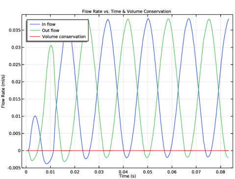 In the Settings window for 1D Plot Group, type Flow Rate vs. Time & Volume Conservation in the Label text field.