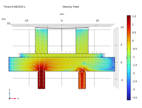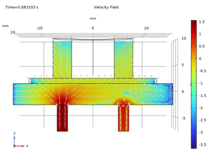 In the Model Builder window, under Component 1 (comp1) right-click Multiphysics and choose Fluid-Structure Interaction, Pair.