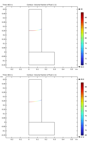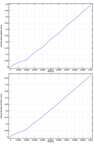 In the Model Builder window, expand the Results>Volume Fraction of Fluid 1 (pf) 1 node, then click Volume Fraction of Fluid 1 (pf) 1.