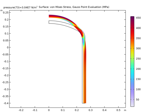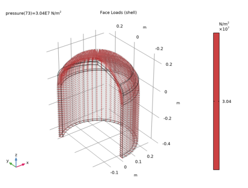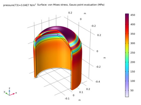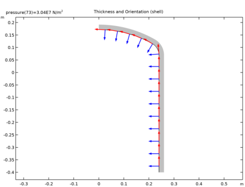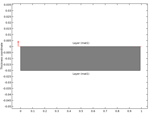 In the Model Builder window, expand the Stress, Through Thickness (shell) node, then click Through Thickness 1.