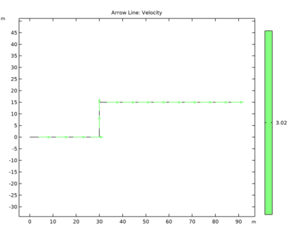 In the Model Builder window, expand the Results>Velocity (pfl)>Arrow Line 1 node, then click Color Expression 1.