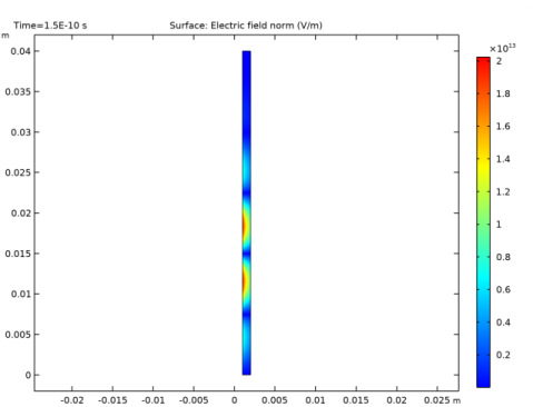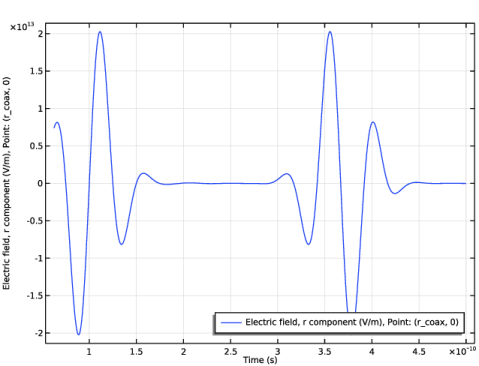 In the Settings window for Point Probe Expression, click Replace Expression in the upper-right corner of the Expression section. From the menu, choose Component 1 (comp1)>Electromagnetic Waves, Transient>Electric>Electric field - V/m>temw.Er - Electric field, r component.