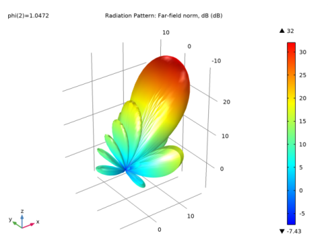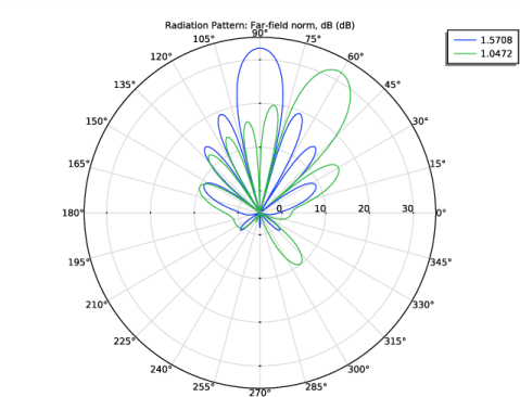 In the Model Builder window, expand the Results>2D Far Field (emw) node, then click Radiation Pattern 1.