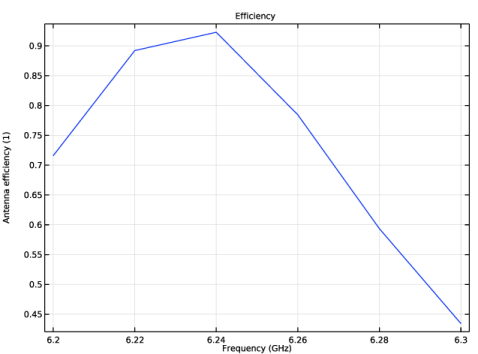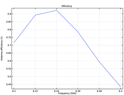 In the Settings window for Global, click Replace Expression in the upper-right corner of the y-Axis Data section. From the menu, choose Component 1 (comp1)>Definitions>Variables>eff - Antenna efficiency.