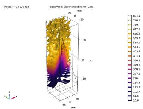 In the Settings window for Arrow Volume, click Replace Expression in the upper-right corner of the Expression section. From the menu, choose Component 1 (comp1)>Electromagnetic Waves, Frequency Domain>Energy and power>emw.Poavx,...,emw.Poavz - Power flow, time average.