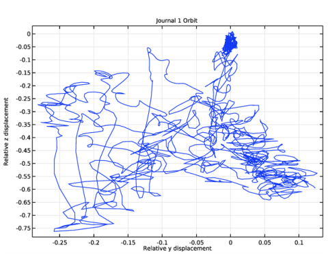 The orbit of the journal in the left bearing is shown in Figure 11. Due to intermittent contact in the bearings and the dynamic nature of the loading, the journal orbit is quite random.