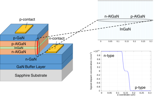 In the Model Builder window, under Component 1 (comp1)>Materials click GaN (Zinc Blende) - Gallium Nitride 1 (mat2).