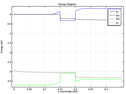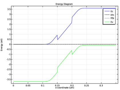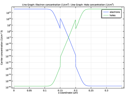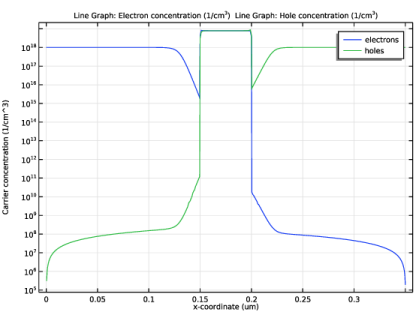 The equation system for heterojunctions is highly nonlinear and numerically challenging. In this tutorial we uses the Semiconductor Equilibrium study step to achieve better convergence. See the verification model example heterojunction_1d for more ways to overcome the numerical challenge.