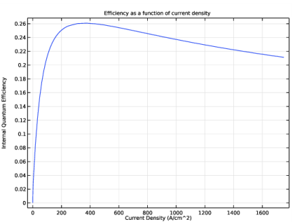 In the Settings window for 1D Plot Group, type Total Emission Rate from InGaN Layer vs. Current in the Label text field.