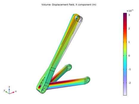 In the Settings window for Volume, click Replace Expression in the upper-right corner of the Expression section. From the menu, choose Component 1 (comp1)>Solid Mechanics>Displacement>Displacement field - m>u - Displacement field, X component.