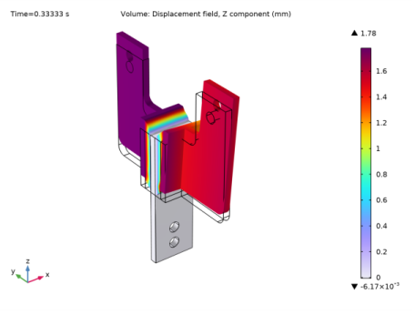 In the Settings window for Surface, click Replace Expression in the upper-right corner of the Expression section. From the menu, choose Component 1 (comp1)>Solid Mechanics>Displacement>Displacement field - m>w - Displacement field, Z component.
