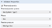Chemistry interface can furthermore be used to make the mixture properties readily available in space-dependent models for modeling of mass transport, heat transfer, or fluid flow.