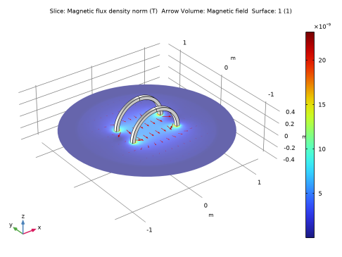 In the Settings window for Arrow Volume, click Replace Expression in the upper-right corner of the Expression section. From the menu, choose Component 1 (comp1)>Magnetic Fields>Magnetic>mf.Hx,mf.Hy,mf.Hz - Magnetic field.