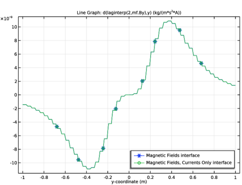 Click Replace Expression in the upper-right corner of the Expression section. From the menu, choose Component 1 (comp1)>Magnetic Fields>Magnetic>mf.normB - Magnetic flux density norm - T.
