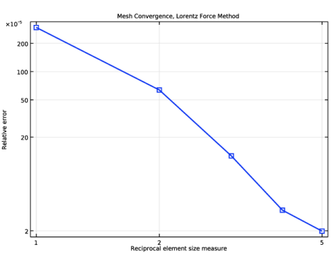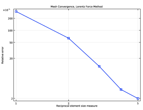 In the Model Builder window, expand the Mesh Convergence, Lorentz Force Method node, then click Global 1.