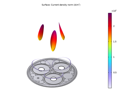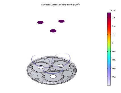 In the Settings window for Surface, click Replace Expression in the upper-right corner of the Expression section. From the menu, choose Component 1 (comp1)>Magnetic Fields>Currents and charge>mf.normJ - Current density norm - A/m², (or just type mf.normJ in the Expression field).