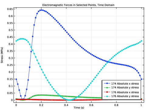 In the Model Builder window, right-click Electromagnetic Forces in Selected Points, Time Domain and choose Duplicate.