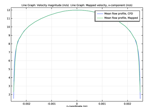 Click Replace Expression in the upper-right corner of the y-Axis Data section. From the menu, choose Component 1 (comp1)>Background Fluid Flow Coupling 1>Mapped velocity - m/s>bffc1.u_mapx - Mapped velocity, x-component.