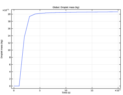 In the Settings window for Global, click Replace Expression in the upper-right corner of the y-Axis Data section. From the menu, choose Component 1 (comp1)>Definitions>Variables>m_d - Droplet mass - kg.