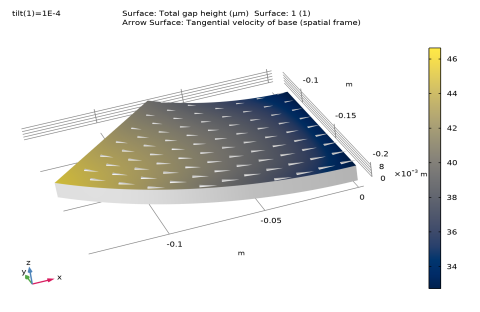 In the Settings window for Surface, click Replace Expression in the upper-right corner of the Expression section. From the menu, choose Component 1 (comp1)>Thin-Film Flow>Wall and base properties>tff.h - Total gap height - m.