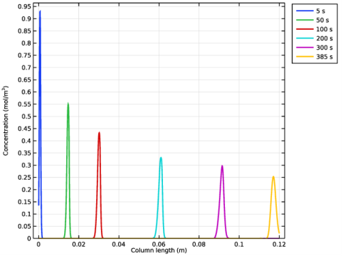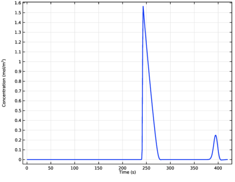 In the Model Builder window, expand the Study 1>Solver Configurations>Solution 1 (sol1)>Dependent Variables 1 node, then click Concentration (comp1.c1).