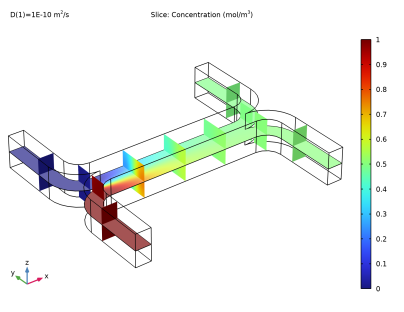In the Settings window for 3D Plot Group, type Concentration, Slice (1E-10) in the Label text field.