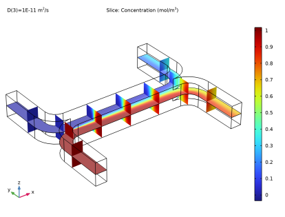 In the Settings window for 3D Plot Group, type Concentration, Slice (1E-11) in the Label text field.