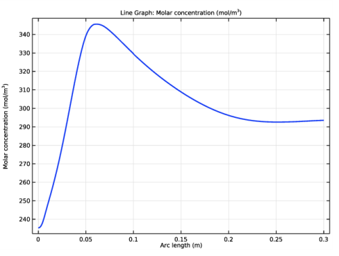 In the Settings window for Line Graph, click Replace Expression in the upper-right corner of the y-Axis Data section. From the menu, choose Component 1 (comp1)>Transport of Concentrated Species>Species wL>tcs.c_wL - Molar concentration - mol/m³.