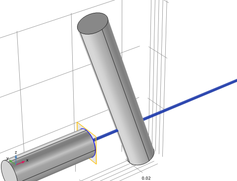 In the Model Builder window, under Component 1 (comp1)>Geometry 1 right-click Work Plane 2 (wp2) and choose Extrude.