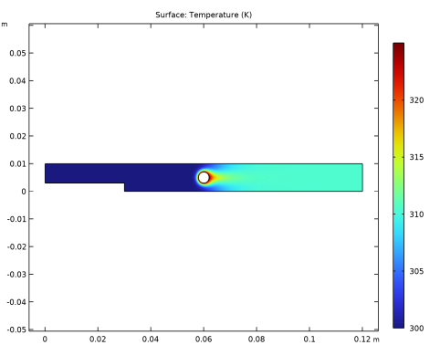 In the Settings window for Surface, click Replace Expression in the upper-right corner of the Expression section. From the menu, choose Component 1 (comp1)>Heat Transfer in Fluids (Study 2)>Temperature>T - Temperature - K.