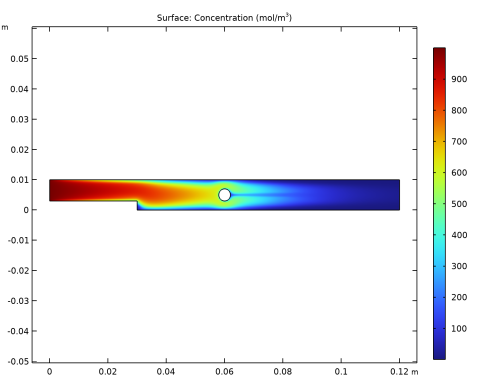 In the Settings window for Surface, click Replace Expression in the upper-right corner of the Expression section. From the menu, choose Component 1 (comp1)>Transport of Diluted Species>Species cA>cA - Concentration - mol/m³.