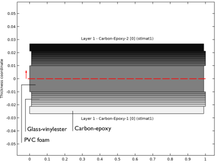 In the Selection table, select the check boxes for Layer 1 - Carbon-Epoxy-1 [0], Layer 1 - PVC Foam [0], and Layer 1 - Carbon-Epoxy-2 [0].