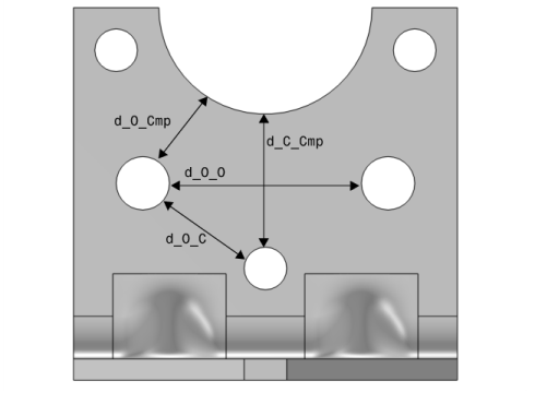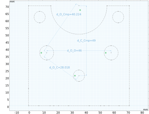 Select the point in the left outer hole and the mounting component and apply Distance by clicking on the Graphics window.