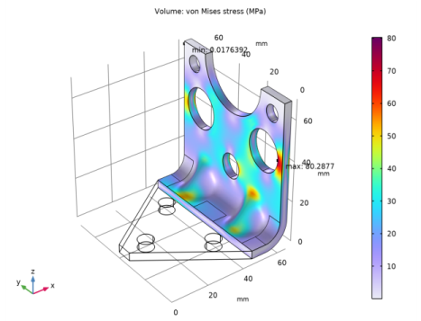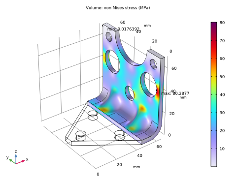 When exposed to a peak acceleration of 4g in all three global directions simultaneously, the effective stress is not allowed to exceed 80 MPa anywhere. This criterion is nondifferentiable because the location of the peak stress can jump from one place to another. A gradient-free optimization algorithm must thus be used.