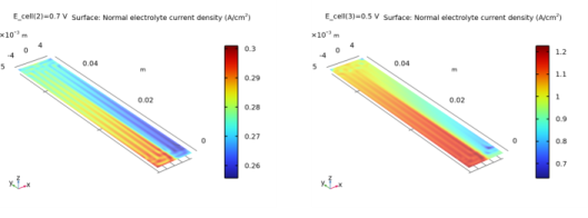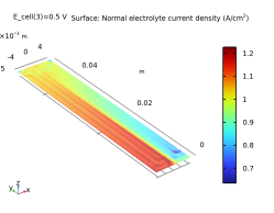 In the Settings window for Surface, click Replace Expression in the upper-right corner of the Expression section. From the menu, choose Component 1 (comp1)>Hydrogen Fuel Cell>fc.nIl - Normal electrolyte current density - A/m².