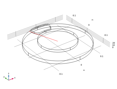 In the Model Builder window, under Component 1 (comp1)>Geometry 1 right-click Work Plane 1 (wp1) and choose Extrude.