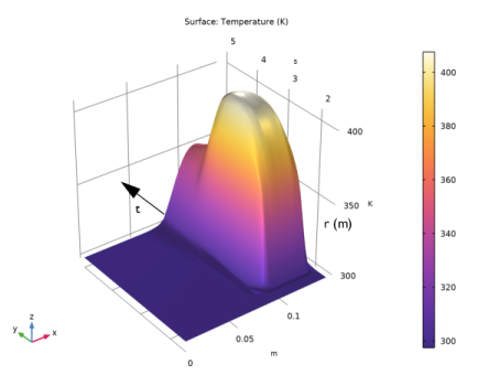 In the Settings window for 2D Plot Group, type Temperature Profile vs. Time in the Label text field.