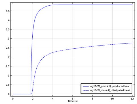 In the Settings window for 1D Plot Group, type Dissipated and Produced Heats in the Label text field.