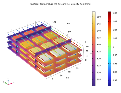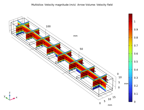 In the Settings window for Multislice, click Replace Expression in the upper-right corner of the Expression section. From the menu, choose Component 1 (comp1)>Laminar Flow>Velocity and pressure>spf.U - Velocity magnitude - m/s.
